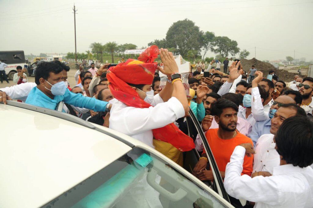 |सिंधिया का एयरपोर्ट पर हुआ भव्य स्वागत