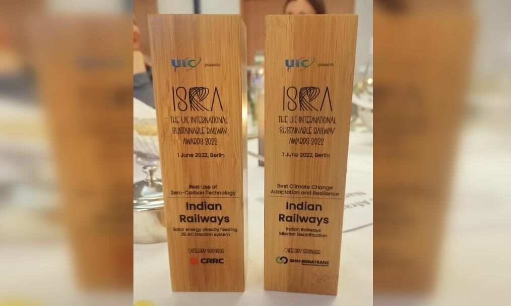 जबलपुर। भारतीय रेलवे की सौर ऊर्जा पहल को अब अन्तर्राष्ट्रीय स्तर पर भी सराहना मिल रही है और पुरस्कार भी मिल रहे हैं। 01 जून 2022 को जर्मनी के शहर बर्लिन में आयोजित अंतरराष्ट्रीय सस्टेनेबल रेलवे अवॉड्र्स के अंतर्गत भारतीय रेलवे के बीना सोलर प्लांट को प्लेनेट कैटेगरी की बेस्ट यूज़ ऑफ जीरो कार्बन टेक्नोलॉजी के अंतर्गत पुरस्कार हासिल हुआ है। बीना में सौर ऊर्जा (सोलर एनर्जी) से 25 एसी ट्रैक्शन सिस्टम को सीधे फ़ीड करने के लिए यह पुरस्कार मिला है। ये पुरस्कार मिलना पश्चिम मध्य रेलवे के साथ-साथ सम्पूर्ण भारतीय रेल के लिए गौरव की बात है। पश्चिम मध्य रेल के महाप्रबंधक श्री सुधीर कुमार गुप्ता ने पमरे के सभी रेल अधिकारियों एवं रेलकर्मचारियों को इस सफलता के लिए बधाई दी है ।