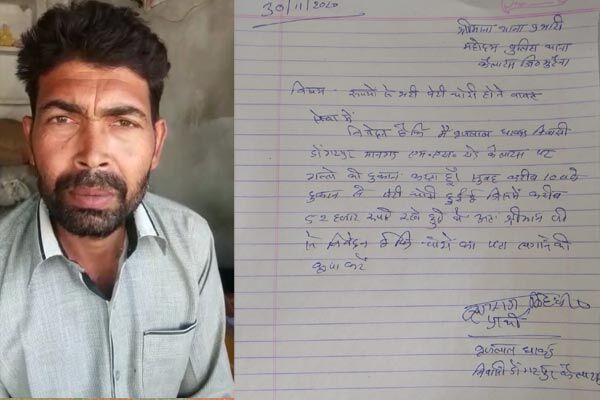 हम आपको बता दें कि डोंगरपुर मानगढ़ केशव पेट्रोल पंप के बगल से बृजलाल धाकड़ की गल्ले की दुकान है। जो सुबह अपनी गल्ले की दुकान खुला छोड़कर बगल में पड़ौसी की दुकान में चले गए, इतने बीच में चोरों ने नोटों से भरे गल्ले को उड़ा ले गए। जब बृजलाल धाकड़ अपनी दुकान में लौटकर आये। तब उन्हें अपना गल्ला नज़र नहीं आया। तब उन्होंने आसपास देखने की कोशिश की। तब उन्हें अपनी दुकान से 200 मीटर खाली गल्ले की पेटी जा मिली। फिर इस पूरी घटना की शिकायत कैलारस थाने में की गई।