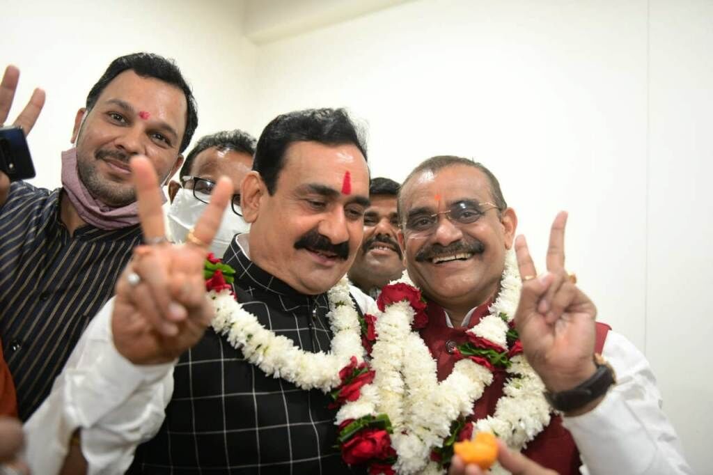 भाजपा की जीत की खुशी में गृहमंत्री नरोत्तम मिश्रा ने पटाखा जलाकर खुशी मनाई।गृहमंत्री नरोत्तम मिश्रा ने उपचुनाव में भाजपा को मिली जीत पर उन्होंने प्रदेश की जनता का आभार व्यक्त किया है। साथ ही कांग्रेस पर निशाना साधते हुए उन्होंने कहा कि मेरी सहानुभूति उन लोगों के साथ है जो कमलनाथ को सीएम बना रहे थे। मेरी सहानुभूति उनके साथ भी है जो कांग्रेस को 24 सीट दे रहे थे। मेरी सहानुभूति दिग्विजय सिंह के साथ भी है। जो जहाँ से आये है वह लोग वहीं जाकर विश्राम करें। दिग्विजय सिंह नर्मदे हर करके पूरी कांग्रेस को घर भेज दिया। उन्होंने कहा कि कमलनाथ ने प्रदेश की जनता को धोखा दिया था। दिग्विजय सिंह ने ईवीएम को लेकर संदेह जताया था तब ही हम लोगों को लग गया था कि भाजपा पूर्ण बहुमत से जीत रही है।