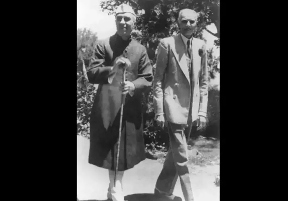 1946: शिमला में एक मीटिंग के दौरान जवाहर लाल नेहरू और मोहम्मद अली जिन्ना। इसी मीटिंग में पहली बार जिन्ना ने मुस्लिम राष्ट्र पाकिस्तान की मांग रखी थी। उन्होने मीटिंग में कहा कि हम मुसलामानों को लेकर एक अलग देश बनाना चाहते है जिसका नाम होगा पाकिस्तान। वहां सारे मुसलमान रहेंगे। जिसको सुनकर जवाहर लाल नेहरू बिल्कुल भी खुश नहीं थे क्योंकि वे कभी नहीं चाहते थे कि पाकिस्तान भारत से अलग हो और यहाँ के मुसलमान कहीं और जाएं।