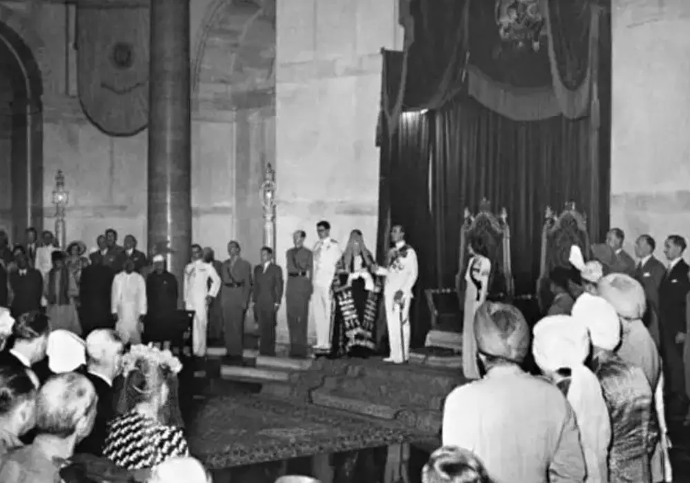 24 मार्च, 1947: ब्रिटेन के पीएम क्लेमेंट एटली ने यह घोषणा की कि अंग्रेज 1948 तक भारत छोड़कर चले जायेंगे। जिसका मतलब था कि भारत को अंग्रेजो से आजादी मिल जाएगी। जिसके लिए यह तय हुआ कि तब तक वायसरॉय लॉर्ड माउंटबेटन भारत में कानून व्यवस्था देखेंगे। यह तस्वीर भी उसी समय की है जब लॉर्ड माउंटबेटन ने स्वतंत्र भारत के पहले गवर्नर जनरल के रूम में शपथ ली थी।