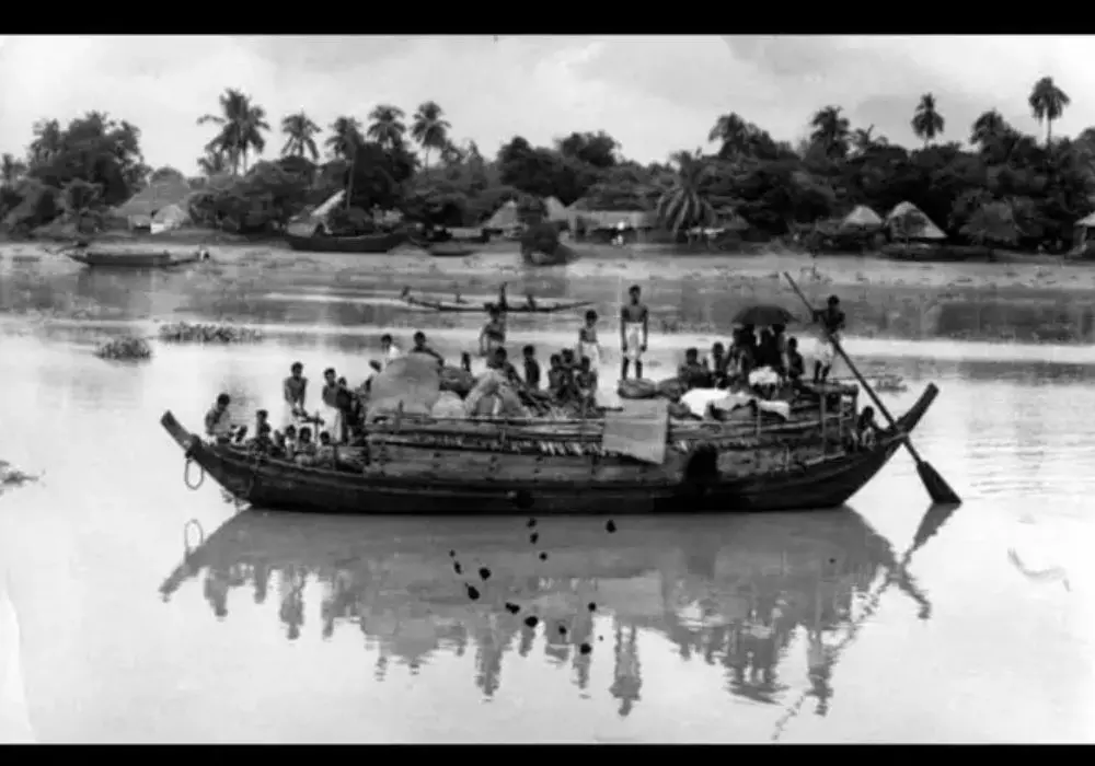 ये उस समय की तस्वीर है जब विभाजन के समय पूर्वी पाकिस्तान से आये लोग भारत के पश्चिम बंगाल क्षेत्र में घुसने की कोशिश कर रहे थे। ये सभी लोग नाव के जरिये पाकिस्तान से भारत आ रहे थे।