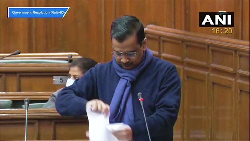 आम आदमी पार्टी के विधायक महेंद्र गोयल ने कहा कि कृषि कानून को निरस्त करते हुए इसकी कॉपी को फाड़कर फेंक देना चाहिए। इतना बोलते हुए उन्होंने सदन में केंद्रीय कृषि कानूनों की प्रति को फाड़ दिया। कैबिनेट मंत्री कैलाश गहलोत ने कहा कि हम तीनों कानूनों का विरोध करते हैं और केजरीवाल सरकार किसानों के इस संघर्ष में हर प्रकार से उनके साथ खड़ी है।विधानसभा सत्र के दौरान आम आदमी पार्टी के विधायक कृषि कानूनों का विरोध करते नजर आए। सदन में किसानों के समर्थन में नारेबाजी भी हुई। आप विधायक महेंद्र गोयल ने 'जय जवान-जय किसान' का नारा लगाते हुए किसानों का समर्थन किया।