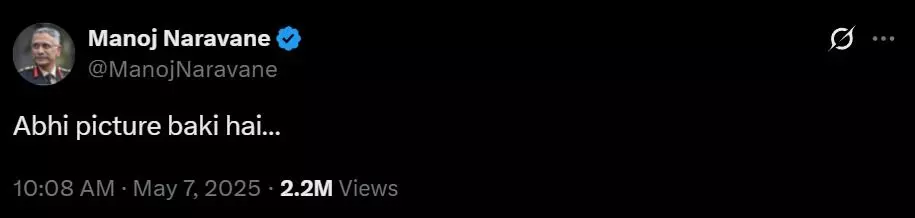 अभी पिक्चर बाकी है: पूर्व थल सेना अध्यक्ष मनोज नरवणे के ट्वीट से पाकिस्तान की बढ़ सकती है टेंशन