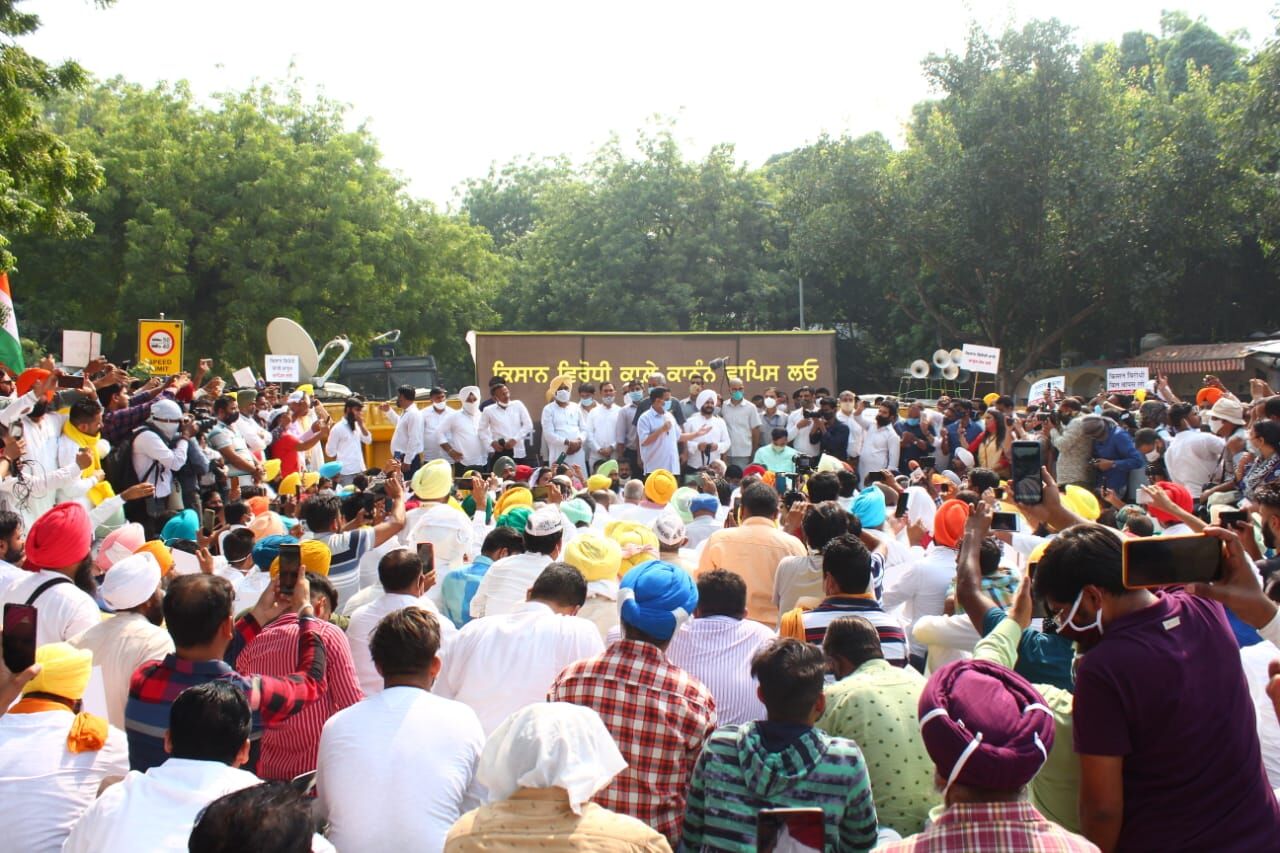 कृषि सुधार अधिनियमों के विरोध-प्रदर्शन के समर्थन में जंतर-मंतर पहुंचे अरविंद केजरीवाल