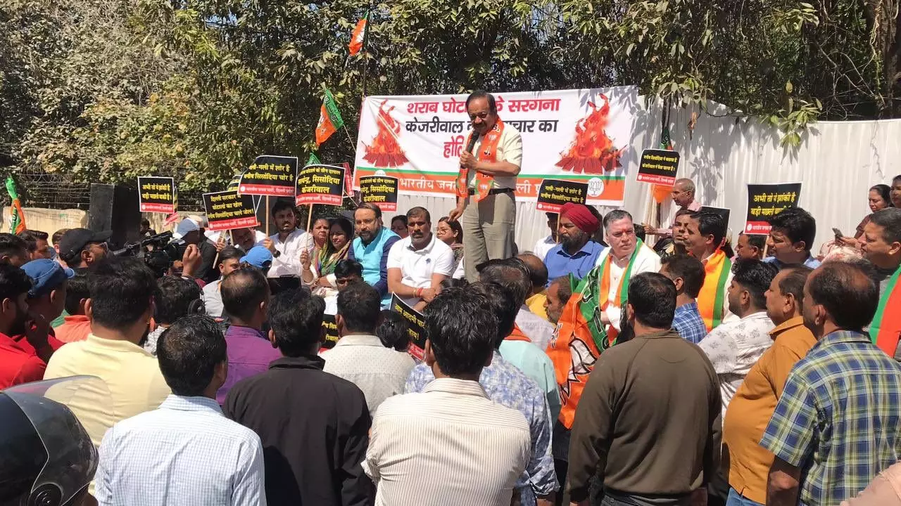 वहीं दिल्ली भाजपा के कार्यकारी अध्यक्ष वीरेंद्र सचदेवा और नेता प्रतिपक्ष रामवीर सिंह बिधूड़ी के नेतृत्व में कनॉट प्लेस के हनुमान मंदिर के बाहर मुख्यमंत्री केजरीवाल, पूर्व उपमुख्यमंत्री सिसोदिया और पूर्व स्वास्थ्य मंत्री सत्येंद्र जैन का पुतला दहन किया गया।वहीं सचदेवा ने केजरीवाल पर तंज कसते हुए कहा कि दिल्ली के मुख्यमंत्री कहते हैं कि वह हनुमान का भक्त हैं, बावजूद इसके पूरी दिल्ली को शराब में झोंक दिया। खुद को ईमानदार कहने वाले आम आदमी पार्टी के नेता आज जेल में बंद है। केजरीवाल के सीबीआई जांच एजेंसी में फंसे हुए उनके तोता फड़फड़ा रहे हैं।