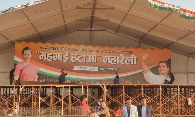 राजधानी जयपुर के विद्याधर नगर स्टेडियम में रविवार को कांग्रेस की महंगाई हटाओ महारैली का आयोजन किया जाएगा। रैली से एक दिन पहले शनिवार को आयोजित पत्रकार वार्ता में कांग्रेस के राष्ट्रीय प्रवक्ता रणदीप सुरजेवाला, प्रदेश कांग्रेस प्रभारी अजय माकन और राजस्थान के मुख्यमंत्री अशोक गहलोत और प्रदेश अध्यक्ष गोविंद सिंह डोटासरा ने प्रदेश कांग्रेस कमेटी कार्यालय में मीडिया से चर्चा की और सवालों के जवाब दिए।