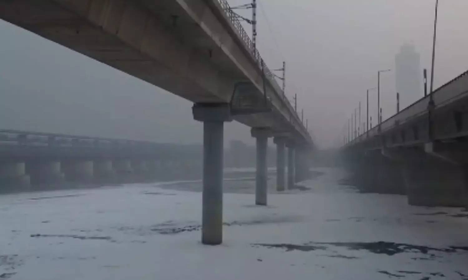 गुरुवार को दिल्ली के कालिंदी कुंज में यमुना नदी में जहरीला झाग तैरता हुआ दिखाई दिया, क्योंकि नदी में प्रदूषण का स्तर अभी भी उच्च है। सामने आई तस्वीरों में इलाके में धुंध की परत भी दिखाई दी। केंद्रीय प्रदूषण नियंत्रण बोर्ड के अनुसार यहां वायु गुणवत्ता 'बहुत खराब' श्रेणी में बनी हुई है।