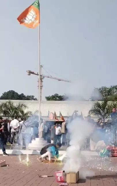 भोपाल में भी बीजेपी कार्यालय पर पार्टी कार्यकर्ताओं ने जश्न मनाया।