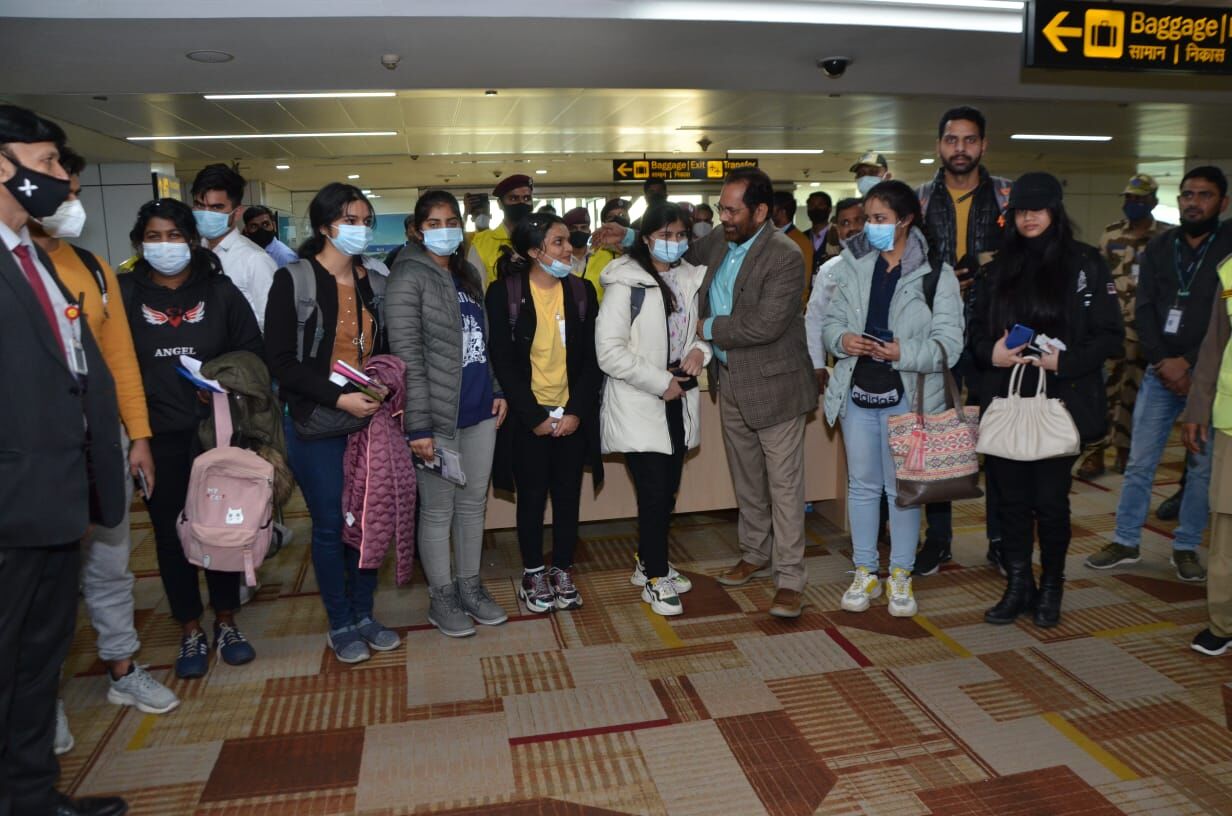 नईदिल्ली। विदेश मंत्रालय की ओर से छात्रों और भारतीय नागरिकों को निकालने के 'ऑपरेशन गंगा' अभियान के तहत सोमवार को छठा विमान हंगरी का बुडापेस्ट से उड़ान भरकर दिल्ली पहुंचा। विमान में करीब 240 भारतीय नागरिक सवार थे जिनका एयरपोर्ट पर केंद्रीय मंत्री मुख्तार अब्बास नकवी ने स्वागत किया।