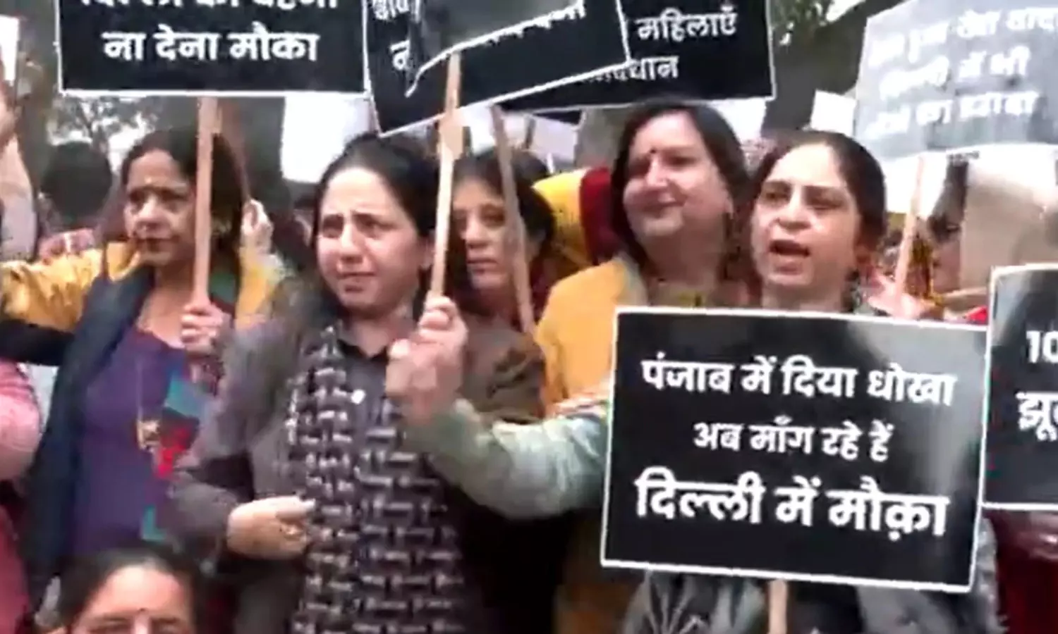 महिलाओं ने चेतावनी दी कि "पंजाब जैसी धोखाधड़ी" दिल्ली में दोहराई जा रही है, जहां केजरीवाल ने महिलाओं को हर महीने 2,100 रुपये देने का नया वादा किया है।