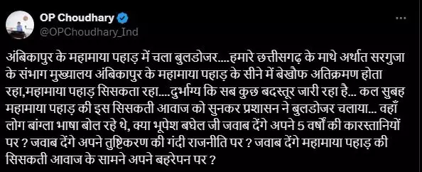 Mahamaya Hill Encroachment: महामाया पहाड़ अतिक्रमण पर गरमाई सियासत, ओपी चौधरी ने भूपेश बघेल से पूछे सवाल