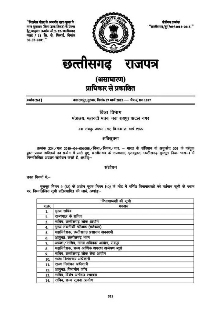 राज्य सरकार ने तमाम शासकीय विभाग प्रमुख को लेकर अधिसूचना जारी की है। इसमें सबसे बड़ा बदलाव राज्य आर्थिक अपराध अन्वेषण ब्यूरो के प्रमुख को लेकर किया गया है, जिसमें अब महानिदेशक स्तर के अधिकारी प्रमुख होंगे।वर्तमान में आईजी स्तर के अधिकारी ब्यूरो के प्रमुख हैं।