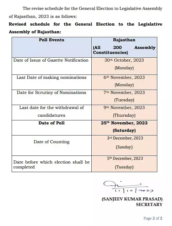 राजस्थान में बदली चुनाव की तारीख, अब 23 जगह 25 नवंबर को होगा मतदान
