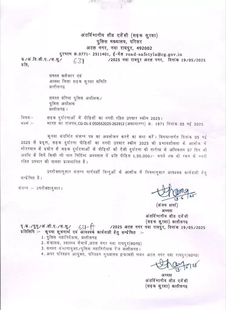 यह सुविधा छत्तीसगढ़ के सभी जिलों में लागू है, जिसका मुख्य उद्देश्य गंभीर रूप से घायल लोगों को समय पर चिकित्सा सहायता उपलब्ध कराना है। इस योजना से उन परिवारों को राहत मिलेगी, जो हादसों के बाद आर्थिक तंगी के कारण इलाज नहीं करा पाते।