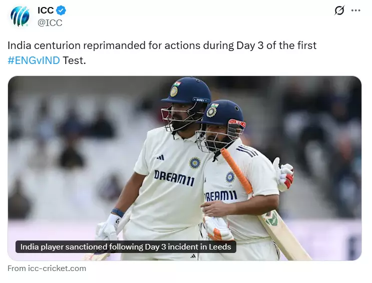 आईसीसी ने अपने आधिकारिक बयान में स्पष्ट किया कि ऋषभ पंत ने खिलाड़ियों और सहयोगी स्टाफ के लिए बनाए गए आचार संहिता के अनुच्छेद 2.8 का उल्लंघन किया है। यह अनुच्छेद अंतरराष्ट्रीय मुकाबलों के दौरान अंपायर के फैसले पर असहमति या विरोध प्रकट करने से संबंधित है। टेस्ट के तीसरे दिन मैदान पर पंत की प्रतिक्रिया को नियमों के खिलाफ माना गया और इसी आधार पर उनके खिलाफ कार्रवाई की गई।