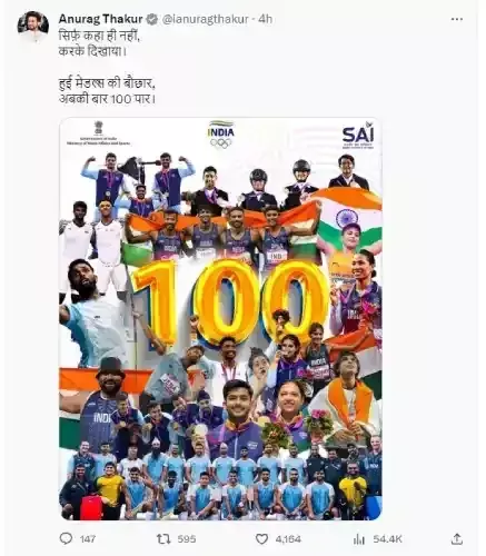 |Asian Games : केंद्रीय खेल मंत्री अनुराग ठाकुर ने सभी खिलाड़ियों को बधाई दी