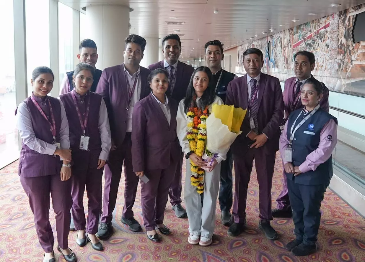 एयरपोर्ट पर हुआ गर्मजोशी से स्वागत