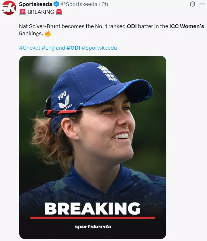 |ICC Women's ODI Ranking: आईसीसी ने महिला वनडे खिलाड़ियों की नई रैंकिंग जारी की है, जिसमें टॉप पर बड़ा उलटफेर देखने को मिला है। भारतीय स्टार ओपनर स्मृति मंधाना को एक पायदान का नुकसान हुआ है। वे अब नंबर-2 पर खिसक गई हैं। उनकी जगह इंग्लैंड की कप्तान नेट साइवर ब्रंट ने नंबर-1 की कुर्सी हासिल कर ली है। साइवर का हालिया प्रदर्शन बेहद प्रभावशाली रहा है।