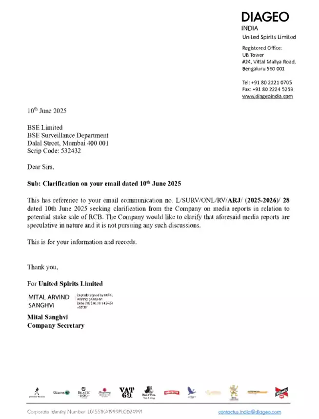 RCB के बिकने की खबरें महज 'अटकलें': यूनाइटेड स्पिरिट्स ने बताई डील की सच्चाई,जानें पूरा मामला