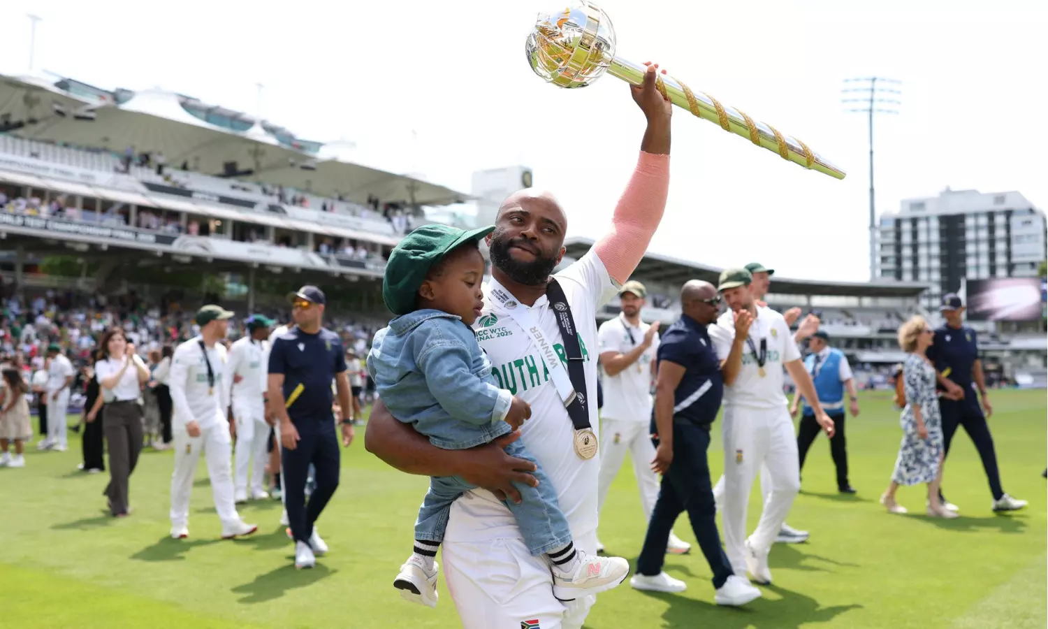 WTC फाइनल के तीसरे दिन जब टेम्बा बावुमा मैदान पर डटे रहे, तो वे गेंदबाजों से ही नहीं, बल्कि शरीर में दर्द से भी जूझ रहे थे। बल्लेबाजी करते समय उनकी हैमस्ट्रिंग खिंच गई, वे साफ तौर पर चोटिल थे, लेकिन न तो उन्होंने कोई शिकायत की और न ही मैदान छोड़ा। उनके चेहरे पर बस एक ही भाव था। अपनी टीम को इतिहास रचते देखना। दर्द को किनारे रखते हुए उन्होंने रन जोड़े। यह साफ हो गया कि कप्तान सिर्फ नाम से ही नहीं, बल्कि अपनी हिम्मत से भी बड़ी मिसाल बन गए हैं।