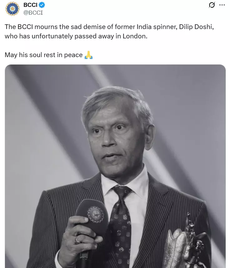 |Dilip Doshi, Former India Spinner, Passes Away At 77: भारतीय क्रिकेट को एक और बड़ा झटका लगा है। पूर्व लेफ्ट आर्म स्पिनर दिलीप दोषी का (Dilip Doshi) 23 जून को दिल का दौरा पड़ने से निधन हो गया। 77 वर्षीय दोषी के निधन की पुष्टि सौराष्ट्र क्रिकेट संघ ने की है। अपने समय के बेहद किफायती और घातक गेंदबाजों में गिने जाने वाले दिलीप दोषी ने प्रथम श्रेणी क्रिकेट में 898 विकेट लेकर खुद को महान गेंदबाजों की सूची में शामिल किया।