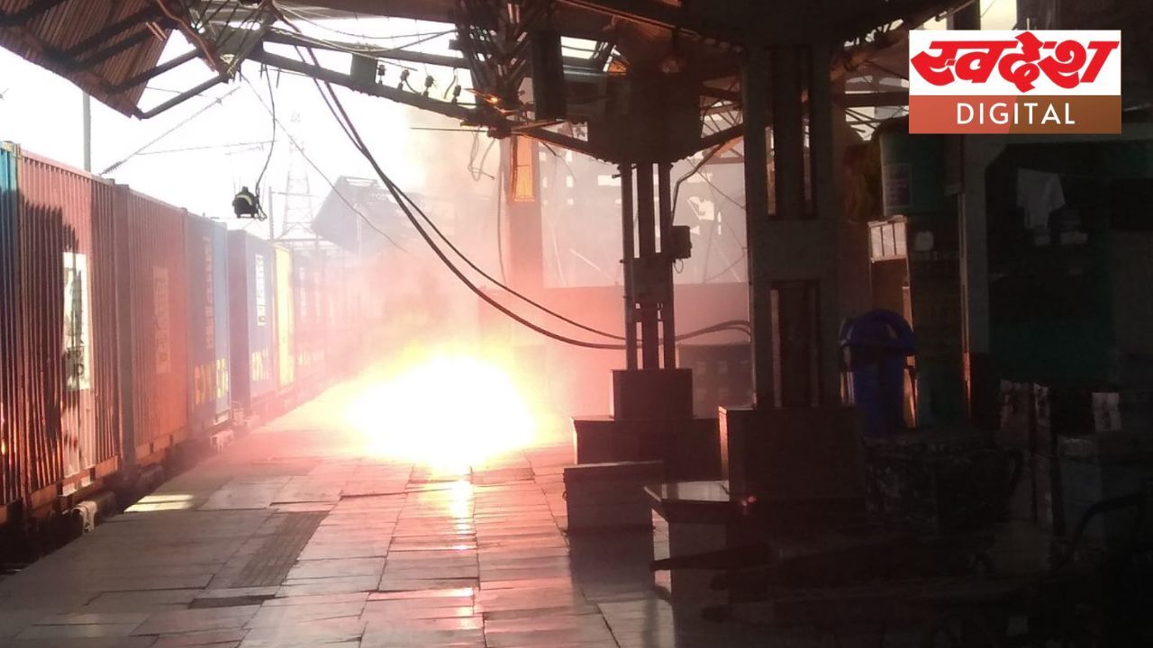 |रेलवे स्टेशन के प्लेटफॉर्म संख्या पांच की केबिल में अचानक शॉर्ट सर्किट होने से आग लग गयी, गनीमत यह रही हादसे के वक्त वहां कोई यात्री ट्रेन नहीं खड़ी थी।
