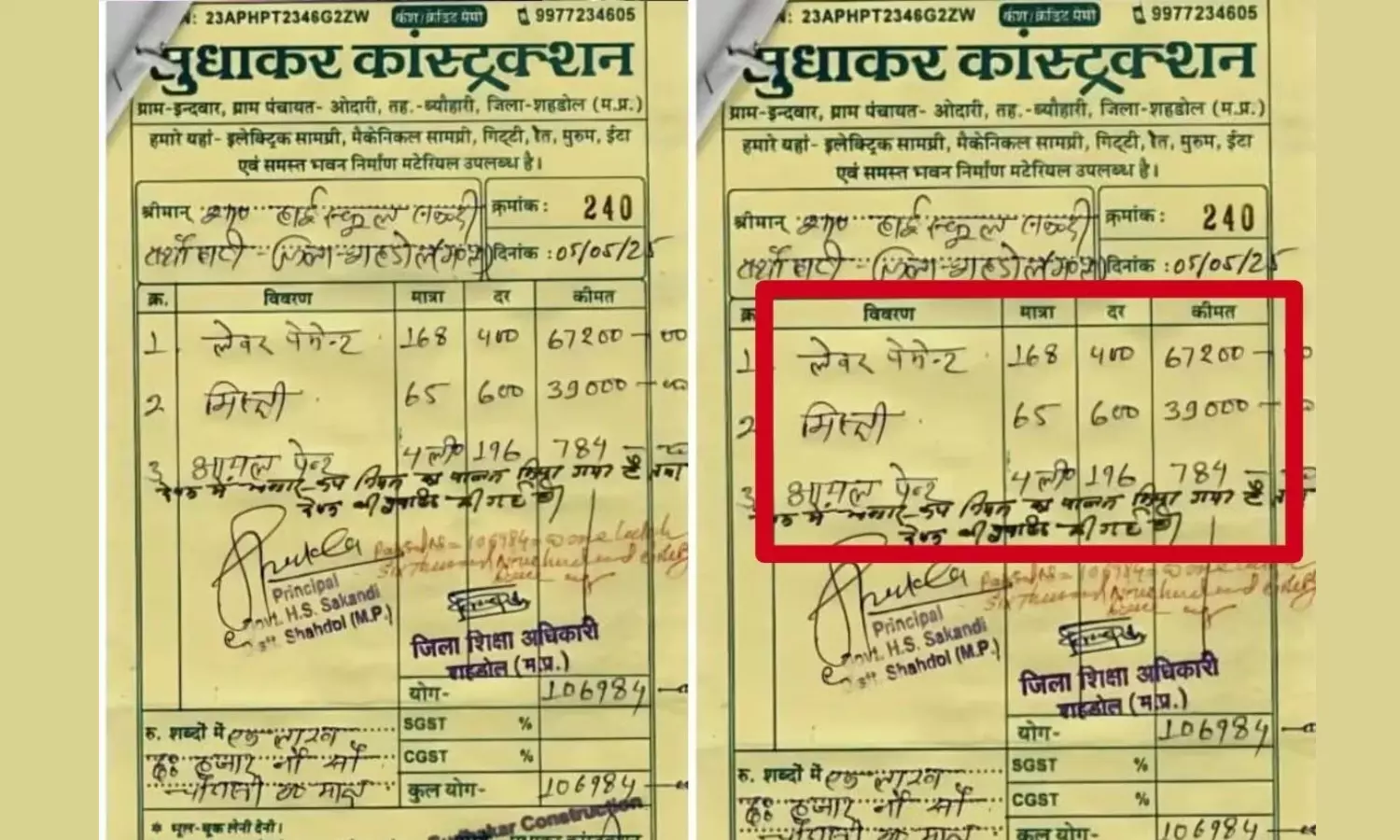 |शहडोल। मध्यप्रदेश के शहडोल जिले से सामने आया एक सरकारी घोटाला इस समय पूरे प्रदेश में चर्चा का विषय बना हुआ है। यहां एक सरकारी हाई स्कूल की दीवारों की पुताई के लिए 4 लीटर पेंट खर्च किया गया, लेकिन मजेदार बात यह है कि उस काम में 168 मजदूर, 65 मिस्त्री, यानी कुल 233 लोग झोंक दिए गए और उस ‘रंगीन’ काम का बिल बना ₹1.06 लाख!