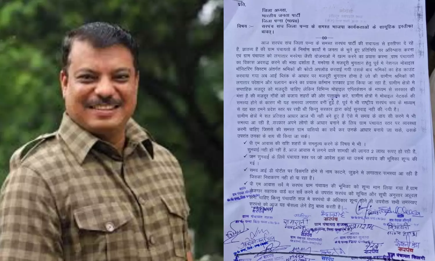 |मध्यप्रदेश। भाजपा के प्रदेश अध्यक्ष वीडी शर्मा के क्षेत्र पन्ना में 60 सरपंचों के BJP से इस्तीफा देने का मामला अब बढ़ता जा रहा है। 60 सरपंचों ने मनरेगा में कम मजदूरी का आरोप लगाते हुए इस्तीफा दिया था। इस मामले पर नेता प्रतिपक्ष उमंग सिंघार ने कहा कि, 60 सरपंचों के इस्तीफे ने सरकार के दावों की पोल खोल दी।