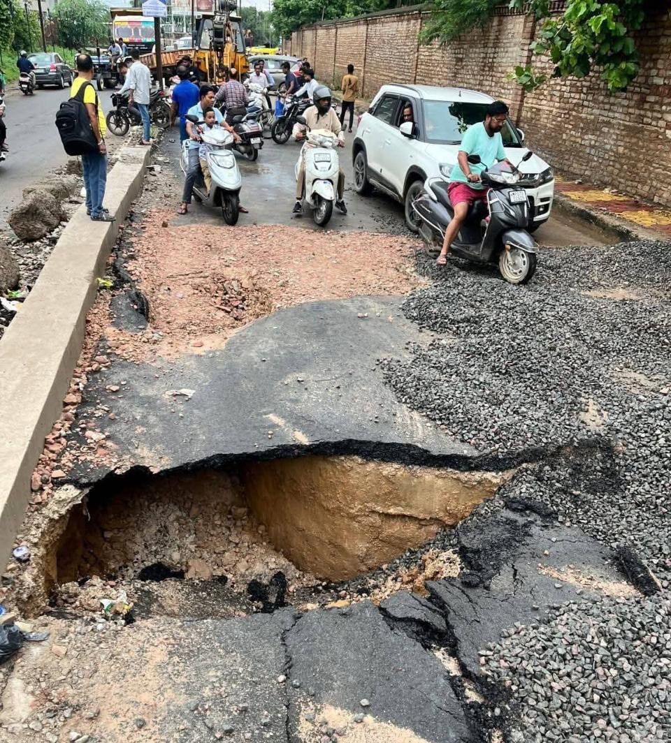 भारी बारिश का असर ग्वालियर की सड़क पर भी देखा गया था। यहां बारिश इतनी हुई कि, सड़क ही धंस गई। सड़क को देख ऐसा लगा मानो किसी ने अंदर सुरंग बनाकर रखी हो। इस मामले में जांच के आदेश भी दिए गए थे। यह सड़क 18 करोड़ में बनकर तैयार हुई थी।