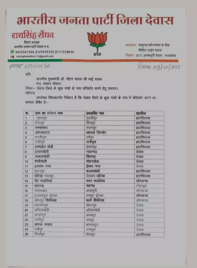 देवास जिले के 54 गांवों के बदले नाम, देखें पूरी सूची और जानिए नए नाम