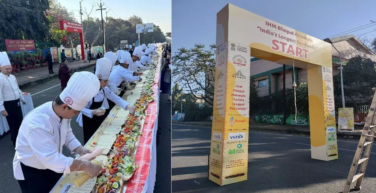 भोपाल। रविवार को राजधानी भोपाल में दुनिया के सबसे लंबे सैंडविच को लेकर नया कीर्तिमान रचा गया। इंस्टीट्यूट ऑफ होटल मैनेजमेंट (IHM) भोपाल ने 269.9 फीट लंबा और करीब 8 इंच चौड़ा सैंडविच तैयार कर सबको चौंका दिया। खास बात यह रही कि यह पूरा सैंडविच महज 7 मिनट 26 सेकेंड में तैयार किया गया। पूरी प्रक्रिया लिम्का बुक ऑफ रिकॉर्ड्स की टीम की निगरानी में हुई। रिकॉर्ड फिलहाल दर्ज कर लिया गया है, जबकि अंतिम मंजूरी के लिए करीब 2 से ढाई महीने का इंतजार करना होगा।
