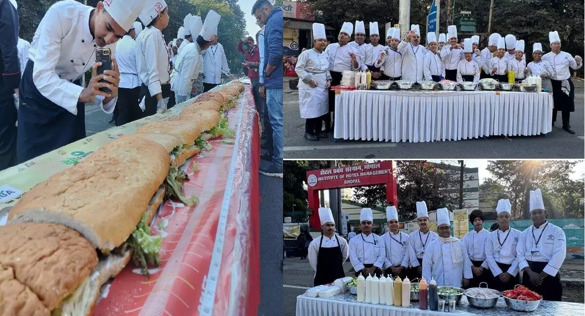 |भोपाल में IHM ने 69.9 फीट लंबा सैंडविच बनाकर रचा इतिहास, फाइनल अप्रूवल का इंतजार लिम्का बुक टीम की निगरानी में 7 मिनट 26 सेकेंड में तैयार।