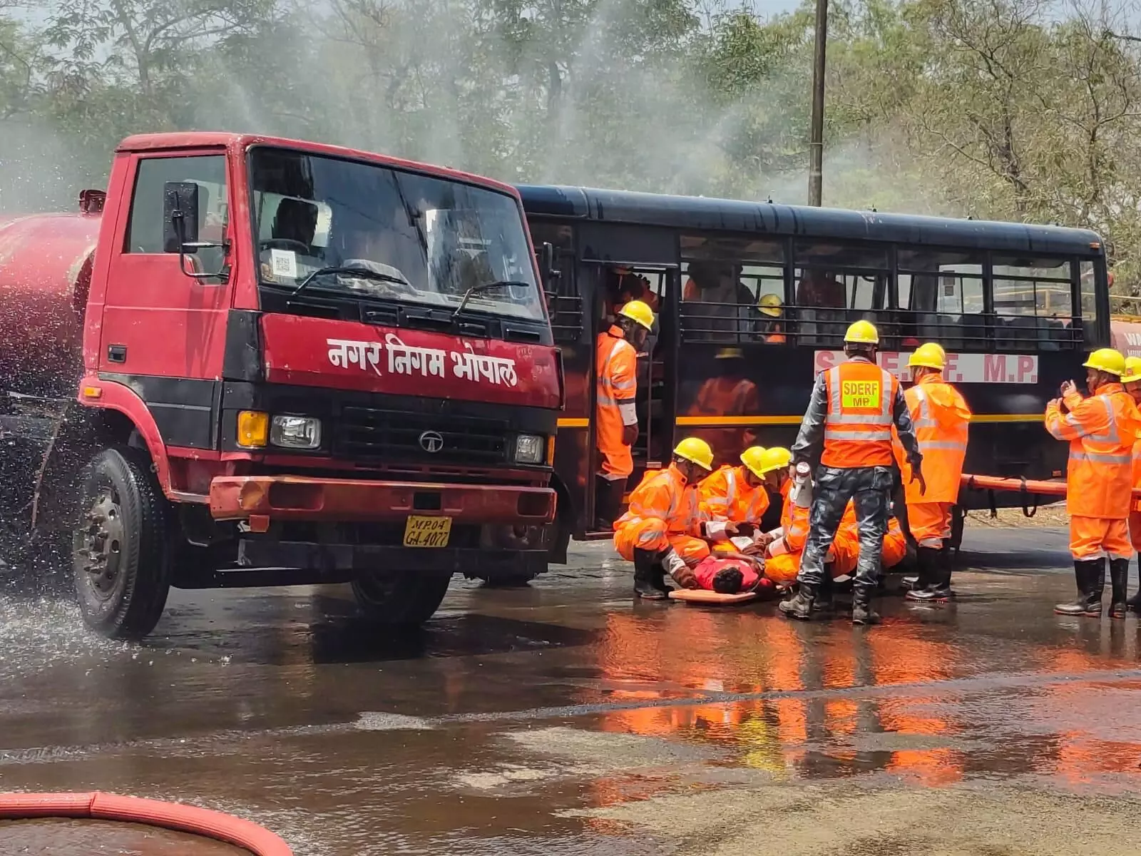 भोपाल में केमिकल इंडस्ट्रियल डिजास्टर से सुरक्षा की तैयारी: NDMA और SDMA ने मिलकर की मॉक ड्रिल