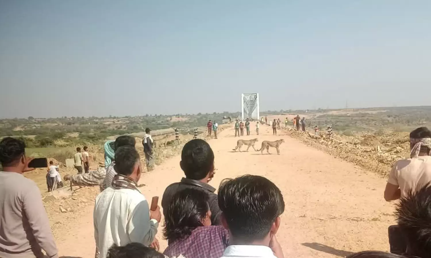 Kuno National Park: कूनो नेशनल पार्क में चीते देख सड़क पर ग्रामीणों की भीड़, लाठी - डंडों और पत्थरों से किया वार