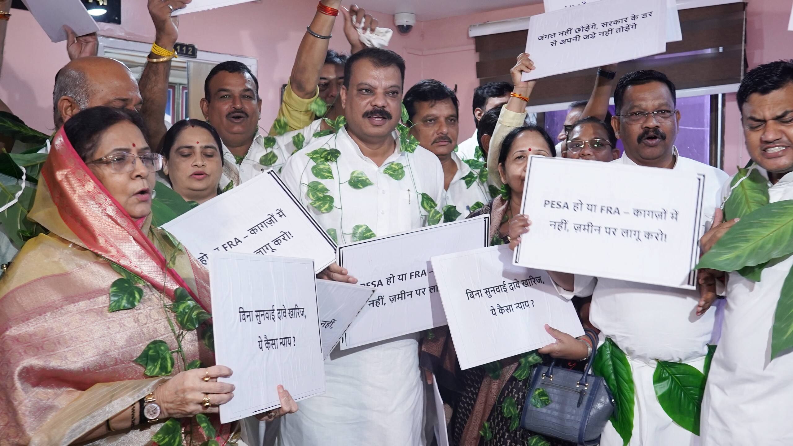 'विधानसभा परिसर में मानसून सत्र के तीसरे दिन विधायकदल के साथ पत्तों से बनी मालाएं पहनकर इस अन्याय के खिलाफ विरोध दर्ज किया। प्रदेश भर में आदिवासियों पर हो रहे अत्याचार, झूठे मुक़दमे, और उनकी ज़मीन छीनने के प्रयास लगातार बढ़ते जा रहे हैं। भाजपा सरकार कॉर्पोरेट हितों को साधने के लिए आदिवासियों की ज़मीनें हथियाने की साज़िश रच रही है। इससे केवल विस्थापन और गरीबी बढ़ेगी।'