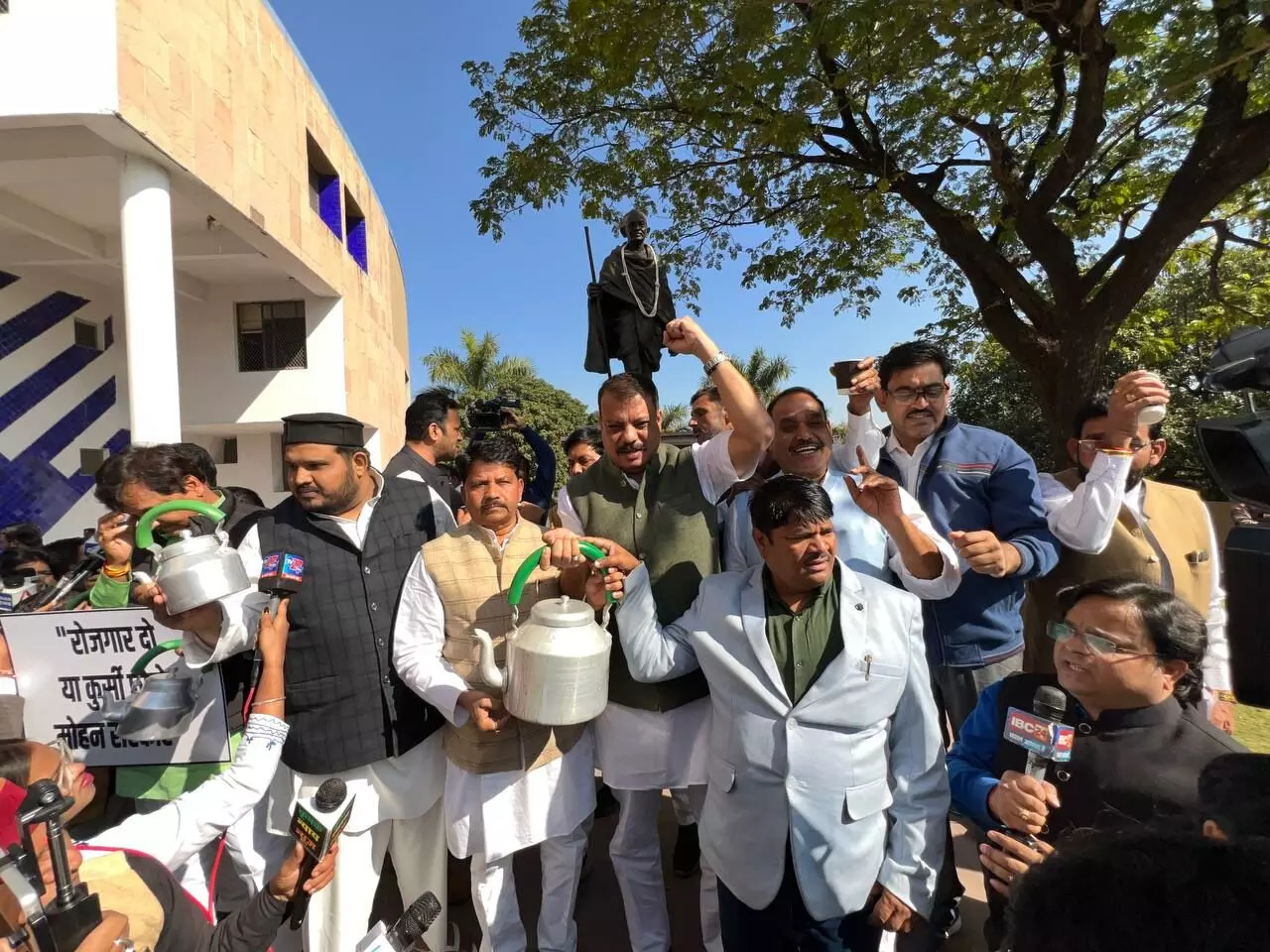 MP विधानसभा शीतकालीन सत्र: चाय की केतली लेकर पहुंचे विपक्ष के नेता उमंग सिंघार, कहा - युवा चाय बेचेंगे