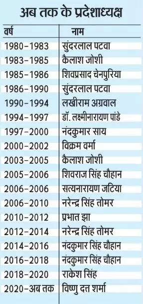 एमपी में अब तक के भाजपा प्रदेशाध्यक्ष :