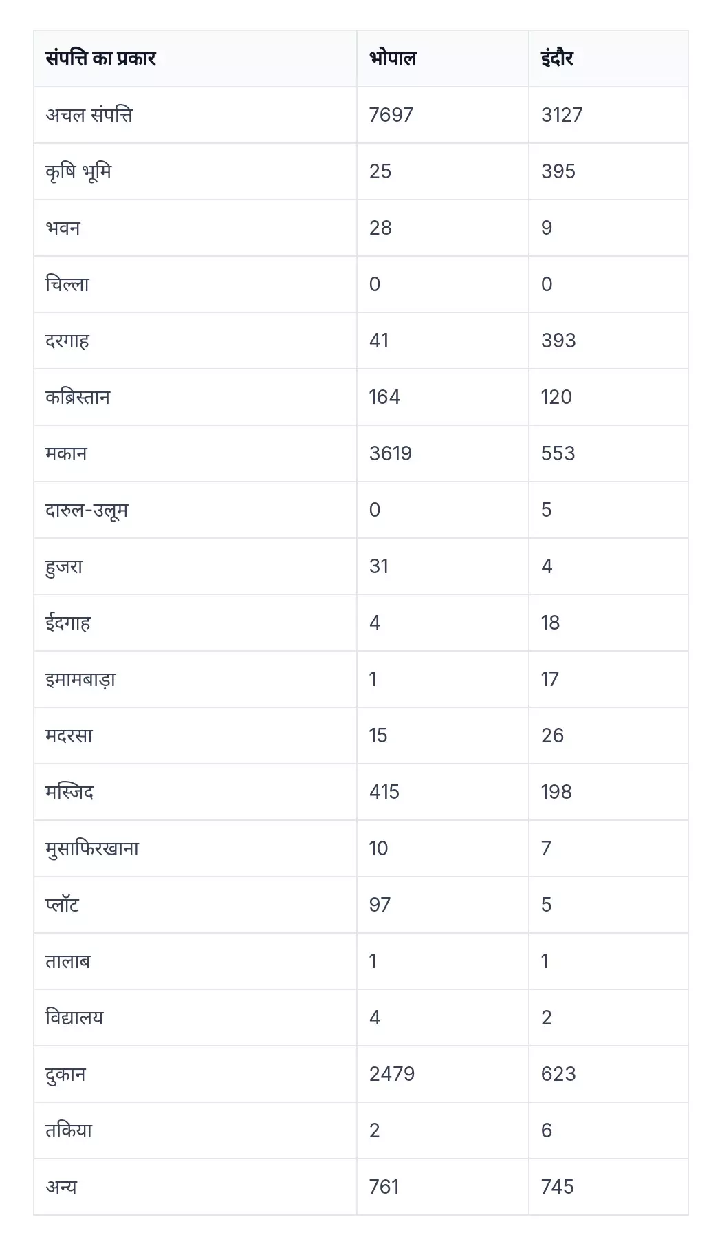 MP में वक्फ की जमीन का करेंट स्टेटस :