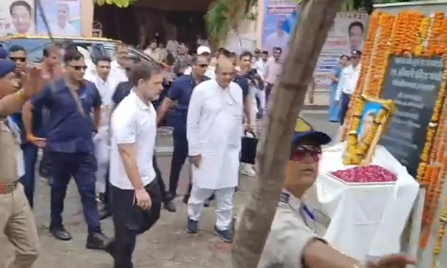 पूर्व प्रधानमंत्री इंदिरा गांधी की तस्वीर पर पुष्पांजलि अर्पित करते हुए राहुल गांधी :