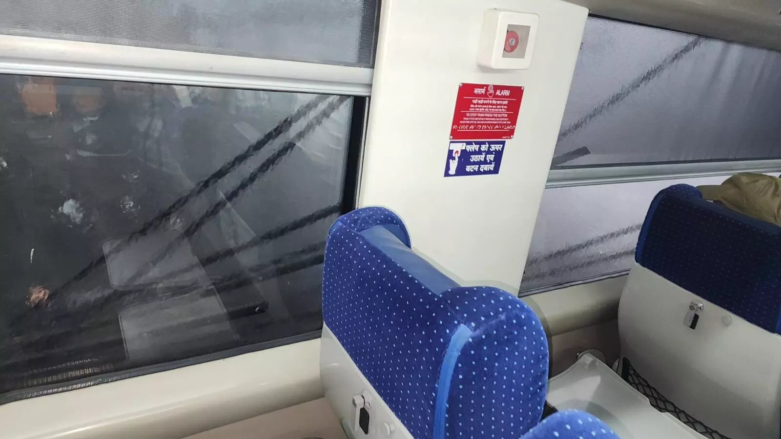 वंदे भारत ट्रेन तेज रफ्तार से जा रही थी तभी सरिए के मुड़े हुए नोक ट्रेन से टकरा गए। लोको पायलट द्वारा अचानक ब्रेक लगाए जाने से यात्री डर गए हालांकि किसी को चोट नहीं आई लेकिन ट्रेन के कुछ कोच के कांच बुरी तरह क्षतिग्रस्त हुए हैं।