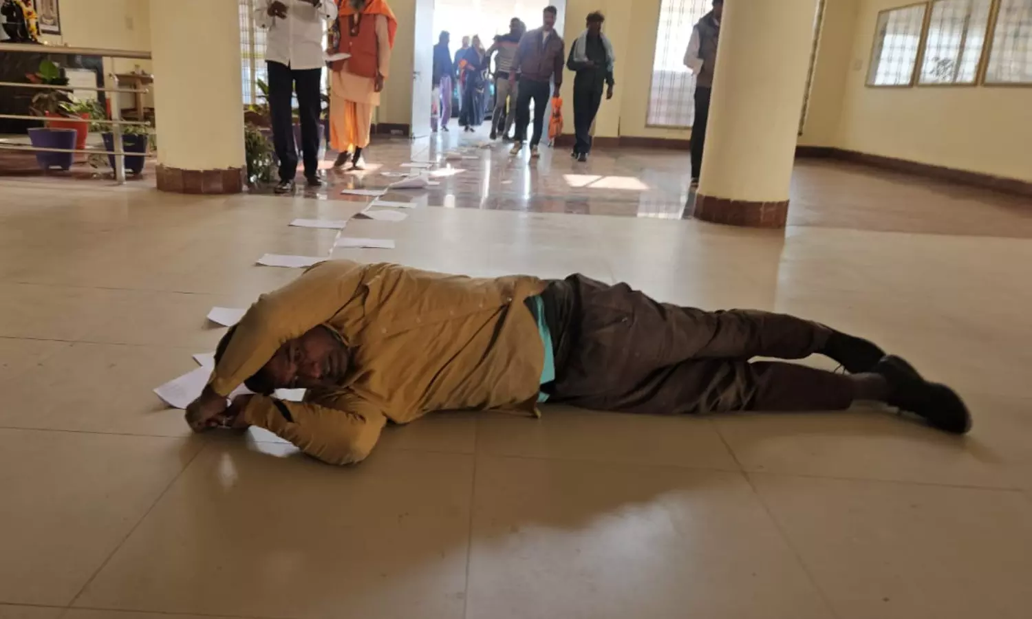 वायरल वीडियो: कलेक्टर कार्यालय में अर्जियों की कॉपी लेकर जमीन पर लौटते हुए पहुंचा प्रार्थी, लगाया भ्रष्टाचार का आरोप