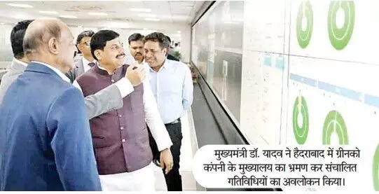 मुख्यमंत्री डॉ. यादव ने हैदराबाद स्थित ग्रीनको कंपनी के मुख्यालय का भ्रमण कर वहाँ संचालित गतिविधियों का अवलोकन भी किया।