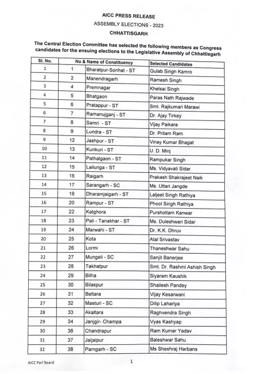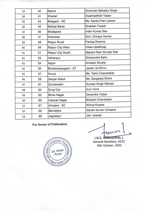 Chattisgarh Election : कांग्रेस ने छत्तीसगढ़ में जारी की दूसरी सूची, 53 सीटों पर घोषित किए उम्मीदवार