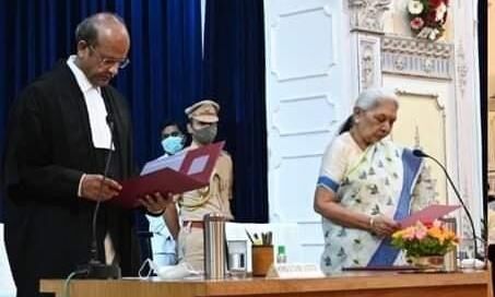 प्रयागराज। उत्तर प्रदेश की राज्यपाल आनंदीबेन पटेल ने सोमवार को इलाहाबाद उच्च न्यायालय के मनोनीत मुख्य न्यायाधीश न्यायमूर्ति राजेश बिन्दल को राजभवन के गांधी सभागार में पद एवं गोपनीयता की शपथ दिलाई।