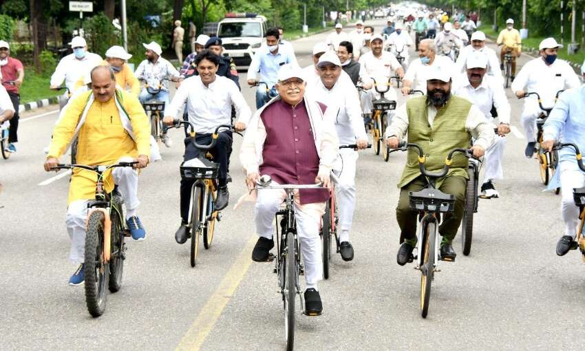 हरियाणा के मुख्यमंत्री मनोहर लाल साईकिल से पहुंचे सचिवालय, पर्यावरण संरक्षण का दिया संदेश