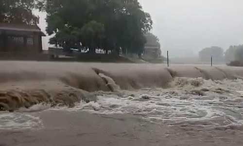 आज सुबह से सौराष्ट्र के कई क्षेत्रों में भारी बारिश से स्थानीय नदियों का जलस्तर बढ़ गया। राजकोट के पास त्रंबा और घोड़ापुर में नदियों का रौद्र रूप देखने के लिए लोगों का हुजूम उमड़ पड़ा। भारी बारिश के कारण राजकोट में कोठारिया के पास रानुजा मंदिर के पास नदी में एक बोलेरो कार फंस गई। कार सवार तीन लोगों को स्थानीय लोगों ने कड़ी मशक्कत के बाद बचा लिया। बाद में दमकल विभाग की एक टीम और पुलिस घटनास्थल पर पहुंची और बोलेरो कार की तलाशी का अभियान चलाया। राजकोट में पांच इंच बारिश हुई। मध्य क्षेत्र में 18 मिमी, कालवाड़ रोड 20 मिमी और बेदीपार में 17 मिमी वर्षा हुई।
