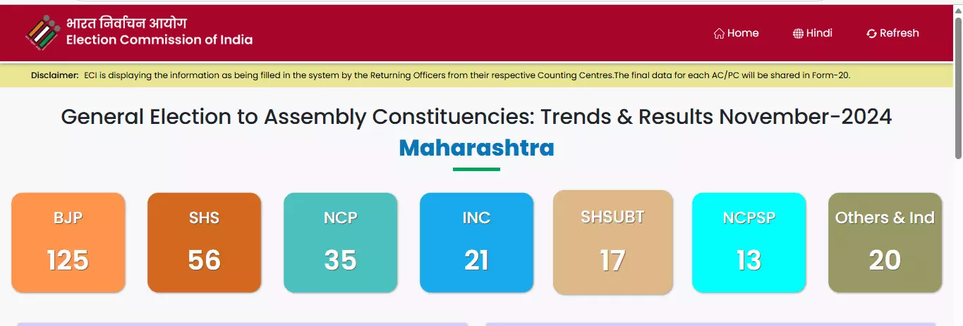 चुनाव आयोग के आंकड़ों के अनुसार जानिए कौन से पार्टी कितनी सीटों पर आगे :