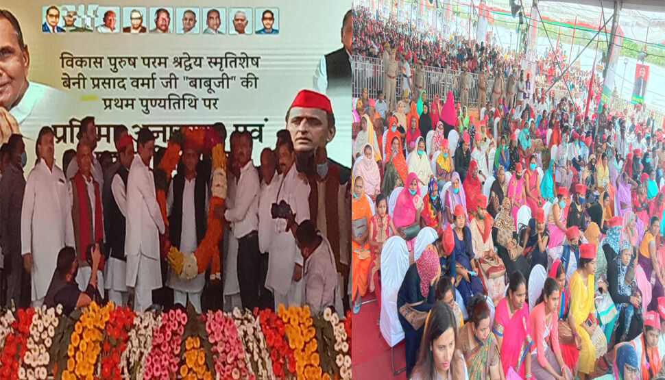 बेनी प्रसाद की मूर्ति का अनावरण के मौके पर सपा का शक्ति प्रदर्शन, बोले अखिलेश-लाल टोपी से घबरा रही बीजेपी